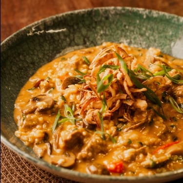 Cogumelos salteados com molho especial, profundidade, textura e aroma em perfeita harmonia.