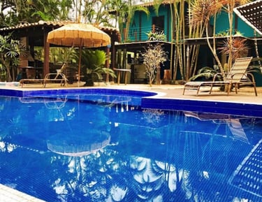 Local aconchegante , café da manhã muito bom, piscina simples. Quarto limpo e organizado. Ar condicionado e ventilador.