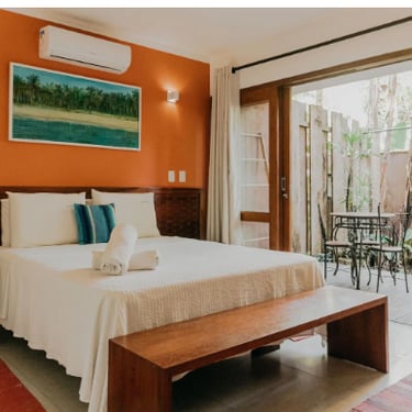 Apenas 200mts da praia de Itamanbuca Com café da manhã incluso! Nossos apartamentos confortam até 4 pessoas confortavelmente