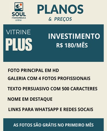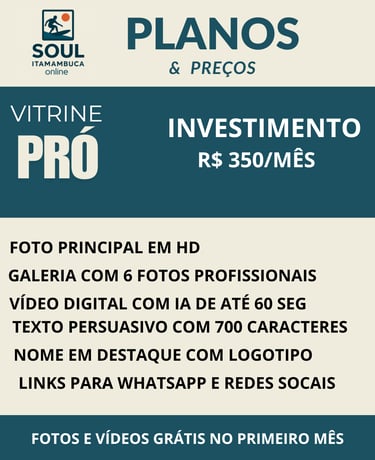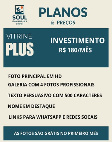 Escolha seu plano e reserve hoje mesmo seu espaço no SOULITAMAMBUCA.ONLINE para aparecer para o público certo na hora da decisão de compra.